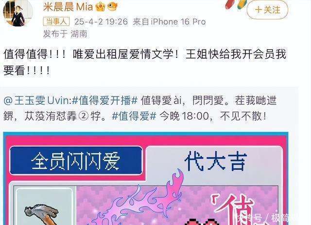 这不,前几天,王玉雯的好朋友米晨晨,为了给王玉雯的新剧《值得爱》宣传,直接在社交媒体上说王玉雯是单身!