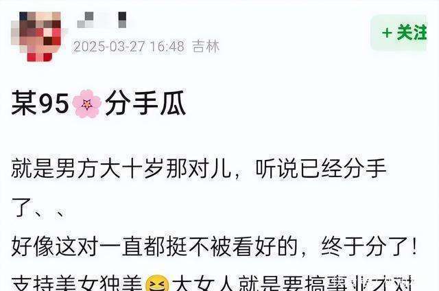 再结合之前一月份传出的95花分手传闻,男方比女方大十岁,这事儿算是彻底实锤了。
